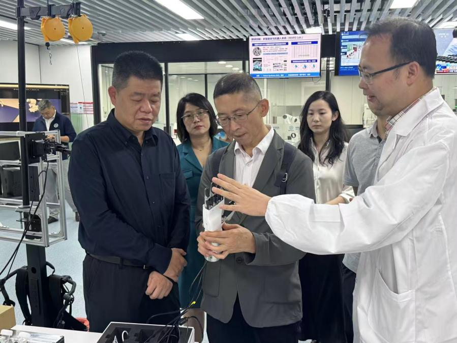 在中科院深圳先进院,胡红升一行与喻学峰研究员围绕具身智能项目展开深度座谈。作为武汉先进院董事长、材料人工智能研究中心主任,喻学峰深耕“AI+材料”创新领域,双方围绕空间、政策、资金等问题,探讨形成市场化解决方案,推动科研资源与产业载体高效对接。