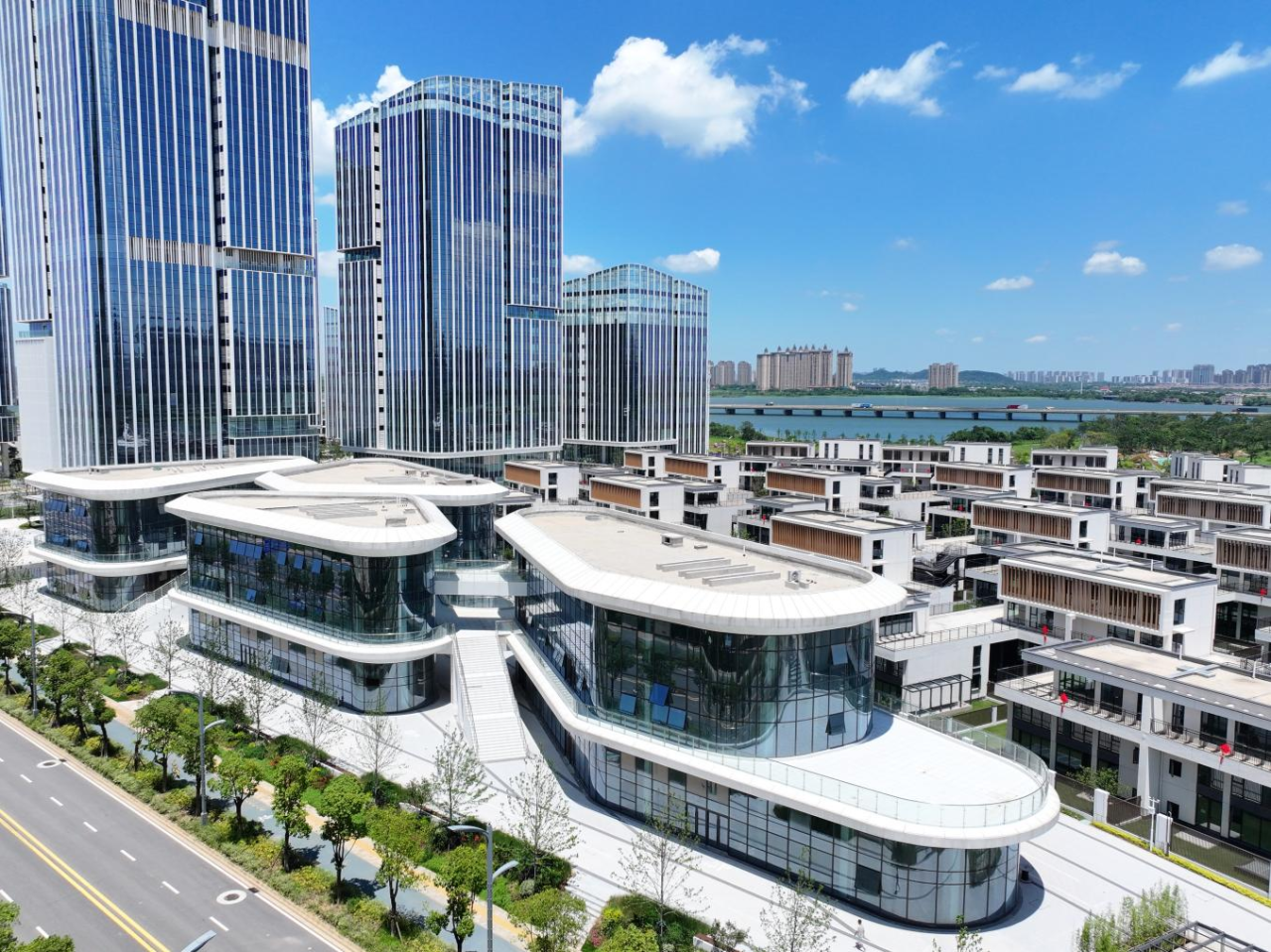 走进经开·泊心私屿,6幢现代化高楼林立,气势恢宏。作为集团打造的首个商住项目,基础设施完善,环境清新优美,着力打造高品质商业楼宇“样板间”。项目聚焦数字经济、新能源与智能网联汽车、智能建造等前沿领域,致力于打造总部企业集聚新高地,通过强大的产业集聚效应和商业辐射能力,为区域经济发展和城市能级提升注入新动力。