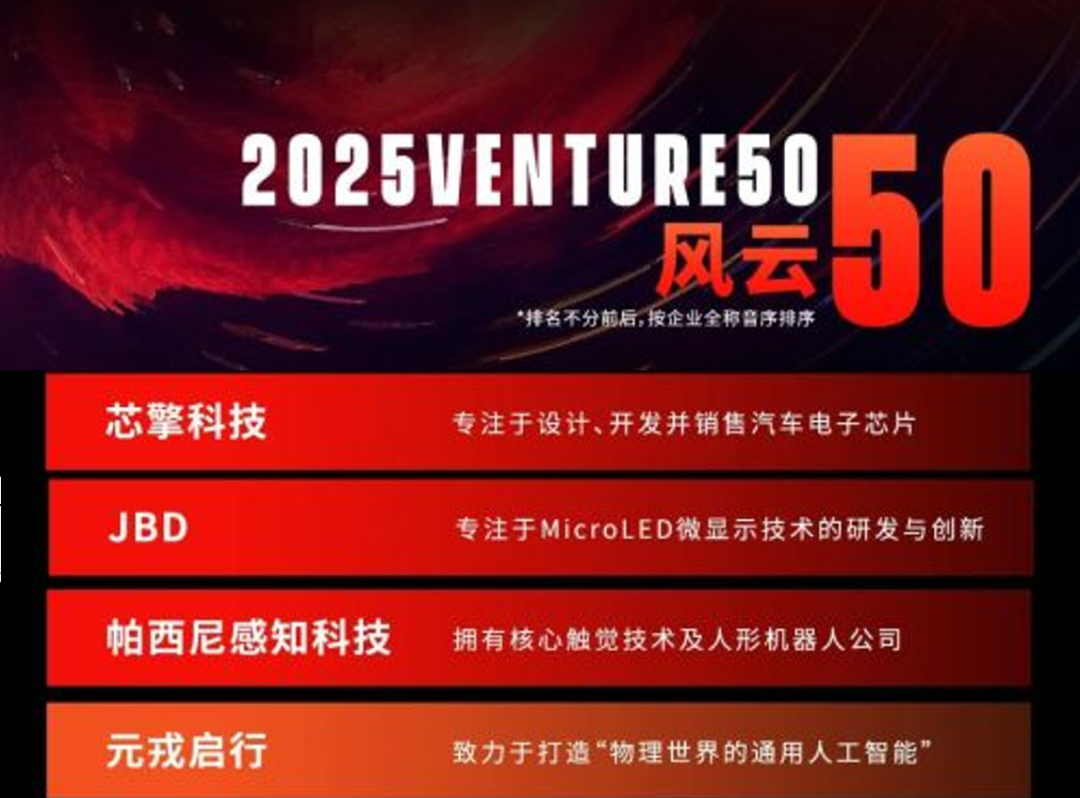 此次跻身“风云50”的4家被投企业,均为各自赛道的领军者,也印证了经开产投集团独到的投资判断力。作为车规级芯片的标杆企业,芯擎科技自主研发的7nm辅助驾驶芯片“星辰一号”填补了国产领域空白,座舱芯片“龍鹰一号”斩获大众海外订单,稳居国产同类芯片装机量榜首;帕西尼感知科技凭借高精度传感技术的关键突破,为智能装备领域提供核心技术支撑,成为行业技术创新的重要力量;JBD(上海显耀科技)的MicroLED微显示技术全球领先,产品已广泛应用于Rokid、雷鸟等知名品牌在内的近50款智能眼镜,有力加速了消费级“AR+AI”技术的融合与普及;元戎启行在自动驾驶商业化领域成功突围,搭载其系统的量产车累计交付量已超20万辆,市占率稳居行业前列,构建起多元化的自动驾驶产业发展生态。