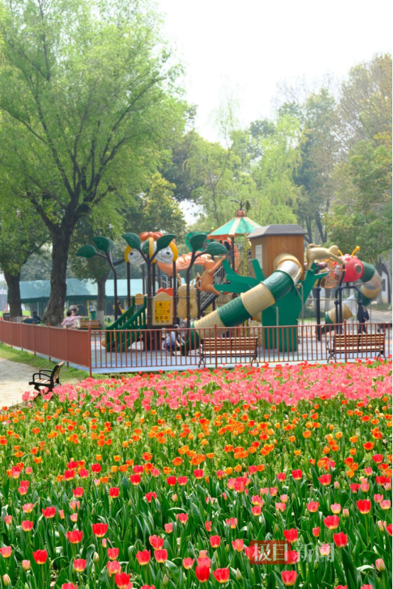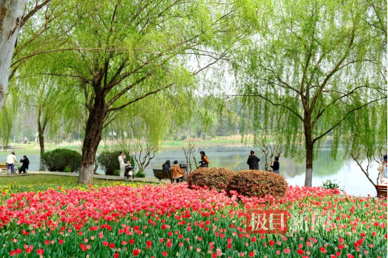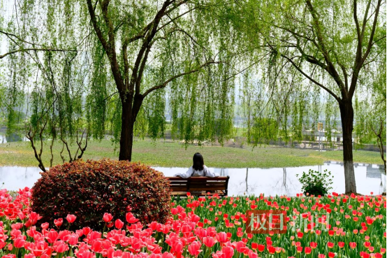 连日来,位于武汉经开区汤湖公园的郁金香盛开,在社交平台走红,不少网友分享起汤湖公园的赏花攻略。