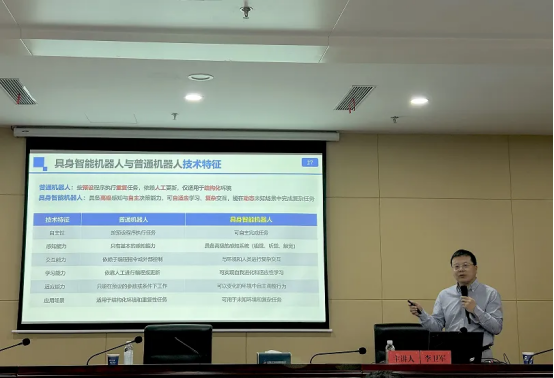 会上,李卫军以“物理AI时代的来临与产业变革”为核心,系统阐释具身智能核心内涵、关键技术体系与产业发展现状,深入剖析技术研发、场景应用等方面的瓶颈挑战,对未来应用场景与技术迭代作出前瞻性预判。同时,结合产投集团的战略定位与区域发展实际,他针对性地提出了聚力打造机器人大脑技术平台、抢先布局康复机器人、深耕轻量化机器人等方面的建议,为集团精准布局具身智能产业、推动高质量发展提供了指引。