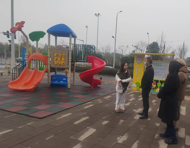 随后,双方一同前往共建项目现场查看了儿童设施的建设质量、安全防护措施及日常运维状况。社区负责人介绍,2025年共建的儿童游乐设施项目,在经开产投集团大力支持下,精准对接社区儿童户外活动需求,填补了社区儿童友好空间的空白,自投入使用以来已成为社区儿童休闲娱乐的好去处,受到了社区居民一致好评。