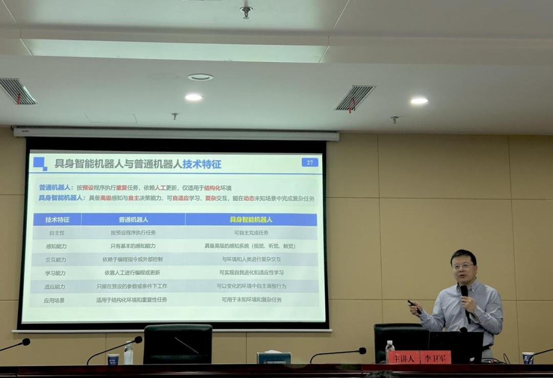 学习会上,李卫军围绕“物理AI时代的来临与产业变革”,系统解读具身智能的核心内涵、关键技术体系及产业发展现状,深入分析技术研发与场景应用中的瓶颈问题,并对未来应用场景及技术迭代方向作出前瞻性预判。结合集团战略定位与区域发展实际,他针对性地提出了聚力打造机器人大脑技术平台、抢先布局康复机器人、深耕轻量化机器人等方面的建议,为集团精准布局具身智能产业、推动产业高质量发展提供了清晰指引。