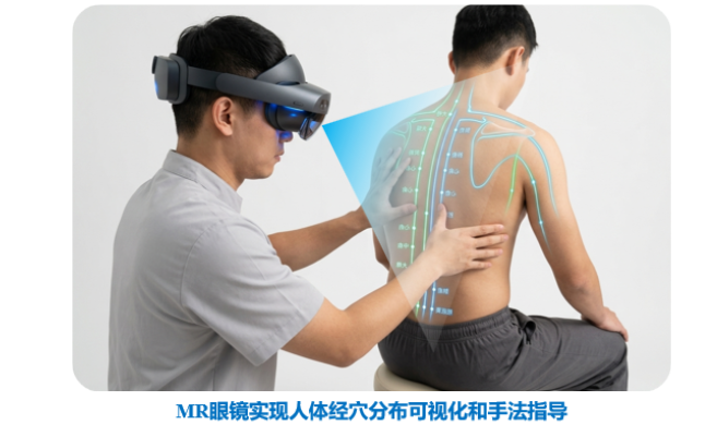 一枚小小的芯片,贴在身上,就能“听”到身体里的心音、肺音等体音,这些声音数据经过芯片端的处理与识别后,还能判断健康风险;护士扎针时,一台仪器用近红外光线照射皮肤,血管立刻清晰显示在屏幕上,再也不用担心看不清;戴上VR眼镜,身体的穴位位置直接呈现在眼前,配合数字中医大模型,它还能教你按揉的手法。这些像科幻片里的场景,即将变成现实。